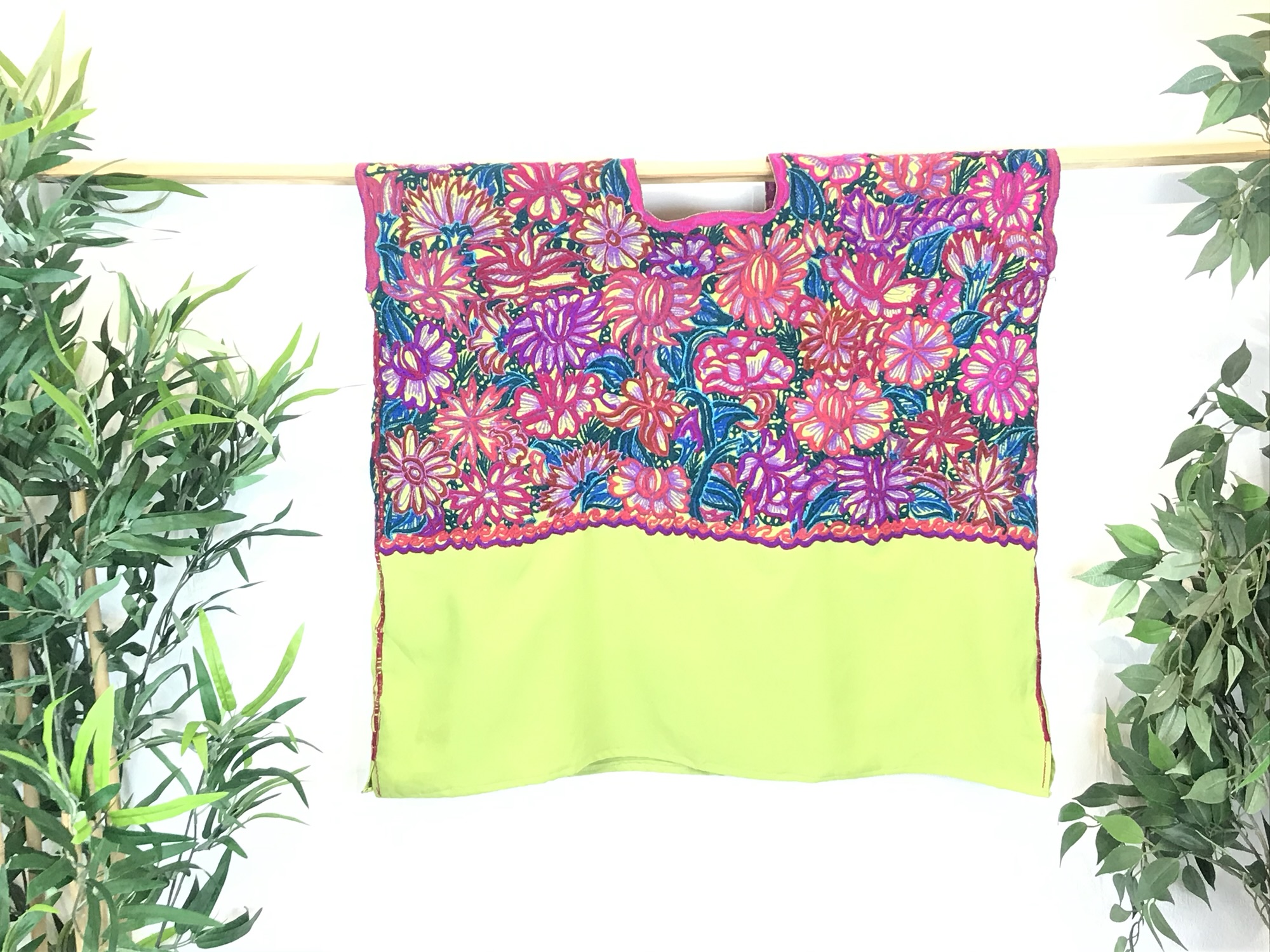 An incredible vintage Huipil from Chichicastenango, Guatemala, over a century old. This textile showcases exquisite handwoven patterns and vibrant colors — a true testament to the skill and artistry of Guatemalan weaving traditions. Perfect to wear or display as a striking wall hanging, this piece brings history, culture, and character to any space. Despite a few minor marks and stains typical of its age, it remains a stunning collector’s item and a beautiful example of traditional craftsmanship. One zie