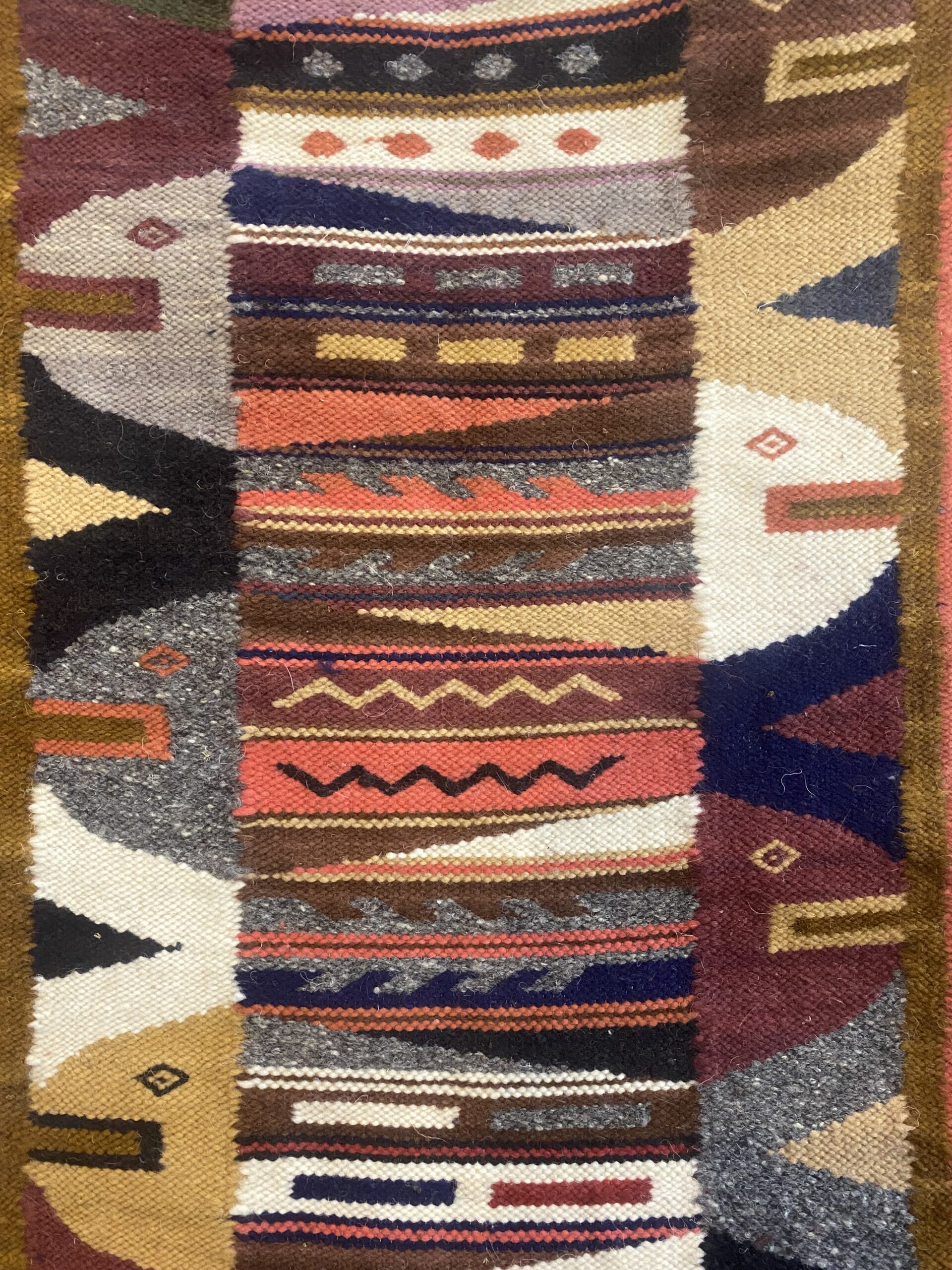 A unique, handcrafted rug celebrating Ecuadorian weaving traditions and vibrant design